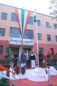 गंगोह [24CN] : शोभित विश्वविद्यालय, गंगोह में आज दिनांक 26 जनवरी को 77 वां गणतंत्र दिवस मनाया गया। इस वर्ष यह राष्ट्रीय पर्व शोभित विश्वविद्यालय, गंगोह के लिए विशेष पलों से स्वर्णिम रहा, जिसमे प्रथम प्रयास में शोभित विश्वविद्यालय गंगोह नैक से ए ग्रेड पाने वाला विश्वविद्यालय बना, जिसमे शोभित विश्वविद्यालय के कुलाधिपति कुँवर शेखर विजेंद्र जी ने शोभित विश्वविद्यालय, गंगोह के प्रांगण में 77वें गणतंत्र दिवस के अवसर पर ध्वजारोहण किया। ध्वजारोहण के समय संस्था के कुलपति, प्रो०(डॉ.) रणजीत सिंह, कुलसचिव प्रो०(डॉ.) महिपाल सिंह, केयर टेकर सूफी ज़हीर अख्तर एवं जमशेद प्रधान जी उपस्थित रहे। इस अवसर पर विश्वविद्यालय के सभी सुरक्षा कर्मियों एवं एन.सी.सी. कैडेट्स ने राष्ट्रीय ध्वज को सलामी एवं गार्ड ऑफ ऑनर दिया एवं राष्ट्रगान गया। कार्यक्रम में विश्वविद्यालय के छात्रों द्वारा अनेक प्रस्तुतियां दी गई जिसमे छात्रा सूफिया, मरियम परवीन, छात्र वंश चौधरी, नब्बाज़ रहमान आदि छात्र एवं छात्राओं ने देश भक्ति गीत, भाषण व कविताओं से कार्यक्रम को यादगार बनाया। कार्यक्रम में मंच संचालन बी.टेक. (कंप्यूटर साइंस) के छात्र अनमोल द्वारा किया गया।