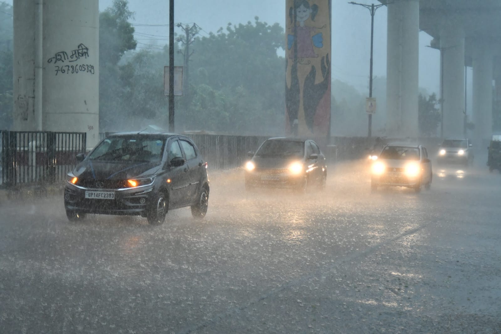 नोएडा में गुरुवार सुबह से ही तेज बारिश हुई। इससे तापमान में कमी आई है और लोगों को उमस से राहत मिली है। हालांकि सड़क किनारे जलभराव की समस्या बन गई है।