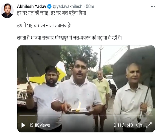 सपा मुखिया अखिलेश ने ट्वीट करते हुए लिखा कि, ‘हर घर नल की जगह; हर घर जल पहुंचा दिया। उप्र में भ्रष्टाचार का नाला लबालब है। लगता है भाजपा सरकार गोरखपुर में जल-पर्यटन को बढ़ावा दे रही है।’