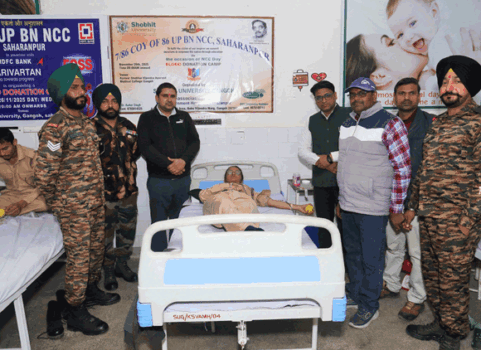 शोभित विश्वविद्यालय गंगोह में 78वें एनसीसी दिवस के अवसर पर रक्तदान शिविर का आयोजन