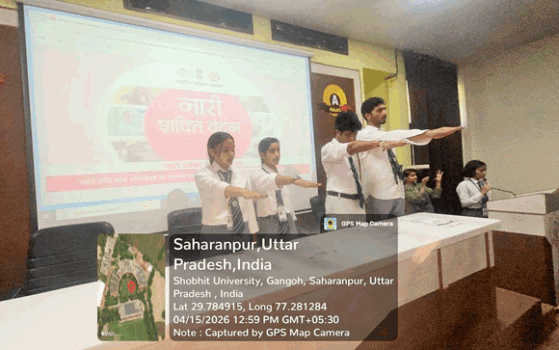 गंगोह : शोभित विश्वविद्यालय गंगोह में दिनांक 15-04-2026 दिन बुधवार को स्कूल ऑफ लिबरल आर्ट एंड लैंग्वेजेज विभाग द्वारा विश्वविद्यालय के सेमीनार हॉल में नारी शक्ति वंदन अधिनियम के अंतर्गत एक कार्यक्रम का आयोजन किया गया। जिसमे विश्वविद्यालय के सभी विभागों के छात्र एवं छात्राओं ने बढ़-चढ़कर भाग लिया, जिनमे नारी शक्ति विषय पर व्याख्यान एवं नारी शक्ति थीम पर एक डॉक्यूमेंट्री फिल्म का प्रसारण भी शामिल रहा।