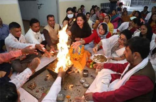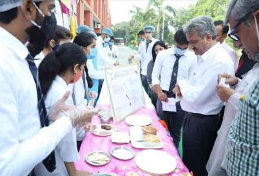 गंगोह [24CN] : शोभित विश्वविद्यालय गंगोह के कुॅवर शेखर विजेन्द्र आयुर्वेद मेडिकल काॅलेज एवं रिसर्च सेंटर में आज दिनांक 2.11.2021 में छटा आयुर्वेद दिवस बडे़ ही हर्षोल्लास के साथ मनाया गया। सर्वप्रथम आयुर्वेद के महाप्रवर्तक भगवान धन्वंतरि जयंती के उपल्क्ष में पूजा एवं हवन का आयोजन महाविद्यालय के प्रांगण में किया गया। तत्पश्चात् आयुष मंत्रालय के द्वारा निर्देशित प्रतियोगिताओं में पोस्टर प्रतियोगिता एवं फूड फेस्टिवल प्रतियोगिता का आयोजन किया। इस कार्यक्रम के संयोजक डाॅ0 नमित वशिष्ठ एवं डा0 मीनाक्षी चैधरी रहे। फूड फेस्टिवल में छात्र-छात्राओं द्वारा विभिन्न प्रकार के आयुर्वेदिक व्यंजन तैयार किए गयें। जो कि खाने में स्वादिष्ट होने के साथ-साथ स्वास्थ्य के प्रति लाभकारी था, और पोस्टर प्रतियोगिता के माध्यम से छात्र-छात्राओं द्वारा विभिन्न पोस्टर के माध्यम से भोजन की महत्ता एवं स्वास्थ्य प्रदर्शन कैसा हो यहा दर्शाया गया। प्रतियोगिता के निर्णानायक डा0 शैलेंद्र भारद्वाज, डा0 ए0पी0 सिंह, डा0 मदन मोहन शर्मा, डा0 तृप्ति आचार्य, एवं, डा0 जितेन्द्र कुमार राणा रहें।