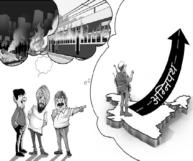 सेना के तीनों अंगों के प्रमुखों की उपस्थिति में रक्षा मंत्री राजनाथ सिंह की ओर से घोषित की गई अग्निपथ योजना के विरोध में सेना में भर्ती होने के आकांक्षी युवाओं की ओर से बिहार, मध्य प्रदेश, राजस्थान, हरियाणा, हिमाचल प्रदेश के साथ अन्य राज्यों में जैसी हिंसा की जा रही है, उसकी जितनी भी निंदा की जाए, कम है। इस हिंसा में ट्रेनों, बसों के अलावा जिस तरह अन्य सरकारी-गैर सरकारी संपत्ति को बड़े पैमाने पर नुकसान पहुंचाने के साथ पुलिस को भी निशाना बनाया जा रहा है, वह अराजकता के अलावा और कुछ नहीं। आखिर ऐसे युवा सैनिक बनने के पात्र कैसे हो सकते हैं?